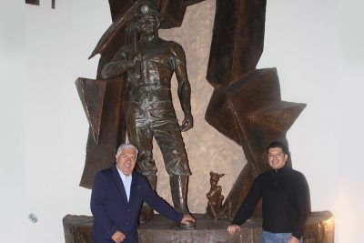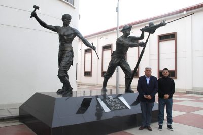 Museum of the National Revolution, Comibol’s historical precinct. Statue made in honor of the memory of the unknown miner. Visit of Engineer César Gallardo, president of the Chamber Of Mines Of Peru, and Doctor Carlos Castagnola, Senior Management advisor of our institution – La Paz, Bolivia, 2018.