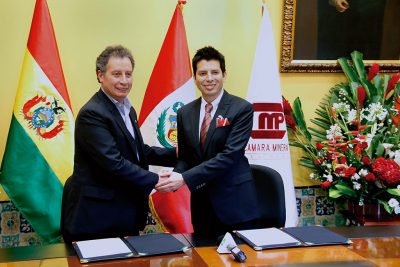Bilateral Agreement between the Chamber Of Mines Of Peru and the Ministry of Mining and Metallurgy of Bolivia. Participants: Ing. César Gallardo (President of the Chamber Of Mines Of Peru) and Félix Navarro, Minister of Mining and Metallurgy of Bolivia – Minister of Mining and Metallurgy’s Offices.