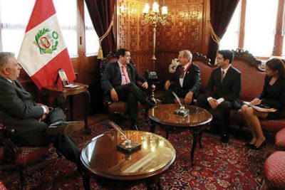 Meeting at the halls of the Congress of the Republic of Peru between Lic. Luis Iberico, President of the Congress, Ing. Guido del Castillo, Mining Entrepreneur, and Ing. César Gallardo, Chief Executive Officer of the Chamber Of Mines Of Peru, within the framework of the Interinstitutional Agreement between the Congress of the Republic and the Chamber Of Mines Of Peru – 2016.