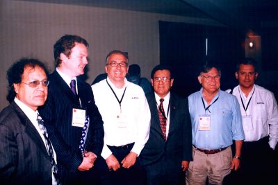 I Seminar on Optimization of Mining Operations, conducted by the Chamber Of Mines Of Peru in the department of La Libertad (Peru). This photo shows Ing. Juan Mendoza Marsano, Senior Management advisor of Consorcio Minero Horizonte S. A., 2005.